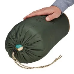 - Kordelzug an der Kapuze mit flachem und rundem Profil. So kannst du in der Nacht ertasten, ob du den oberen oder unteren Teil der Schlafsackkapuze zuziehst.