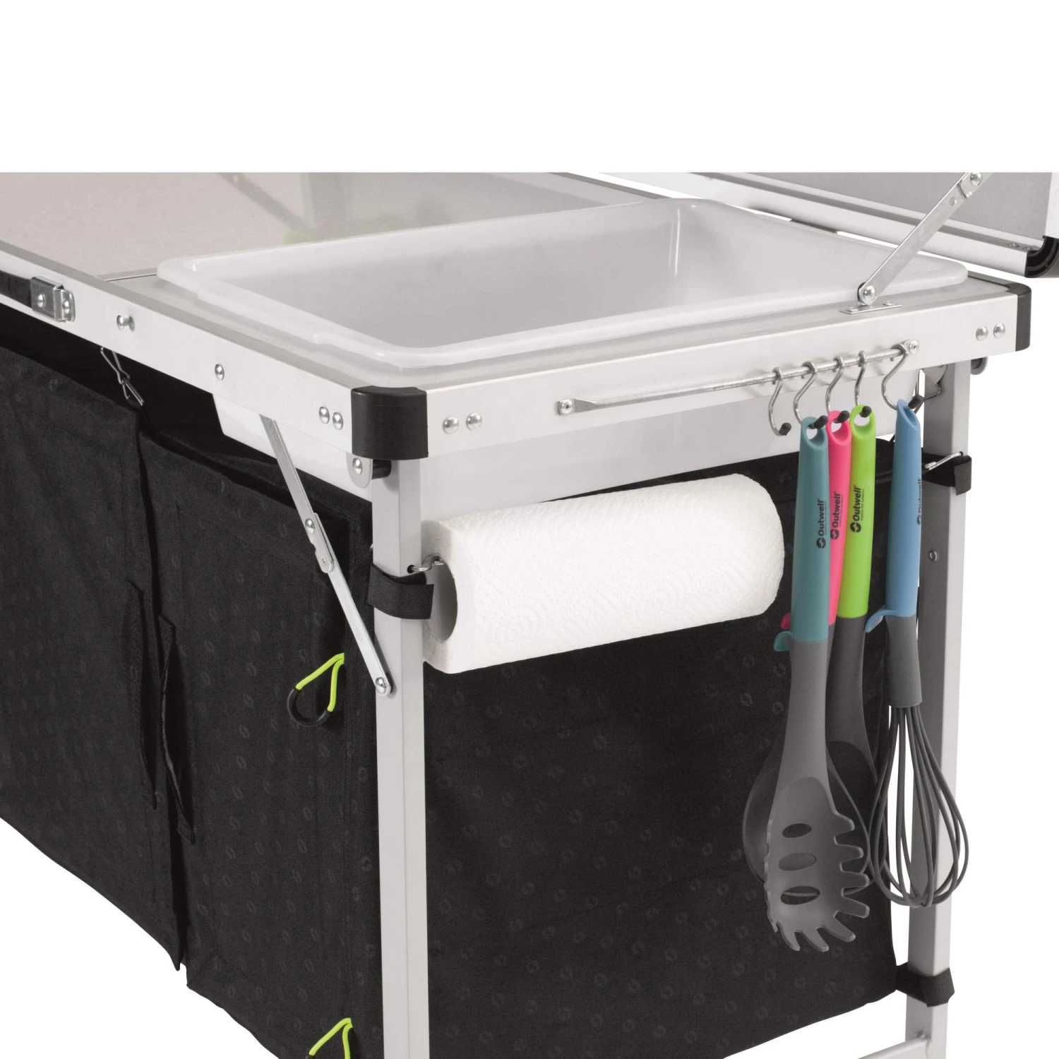 Der Drayton Kitchen Table leistet dir nicht nur als stabile Arbeitsfläche beim Kochen wertvolle Dienste, sondern kann auch noch Töpfe, Lebensmittel oder Gasflaschen unterbringen. Hinter den magnetverschlossenen Türen finden sich zusätzliche RV-Netzflächen, die Insekten von deinen Nahrungsmitteln fernhalten. Außerdem sorgen weitere Mesh-Einsätze an der Rückseite für Luftzirkulation in den Fächern.