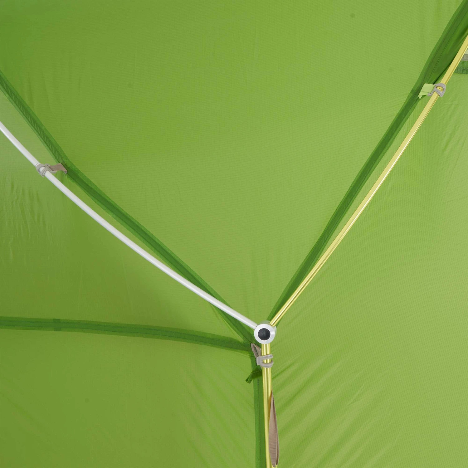 Der Eingang kann mit zwei (separat erhältlichen) Tarpstangen zu einem Sonnensegel aufgestellt werden und vergrößert damit die ohnehin schon großzügig bemessene Apsis. Soll es noch luftiger werden, kannst du den Eingang und die Seitenteile bis zum ersten Gestängebogen aufrollen. Du erreichst damit maximale Belüftung und einen ungestörten Zugang zum Zelt.